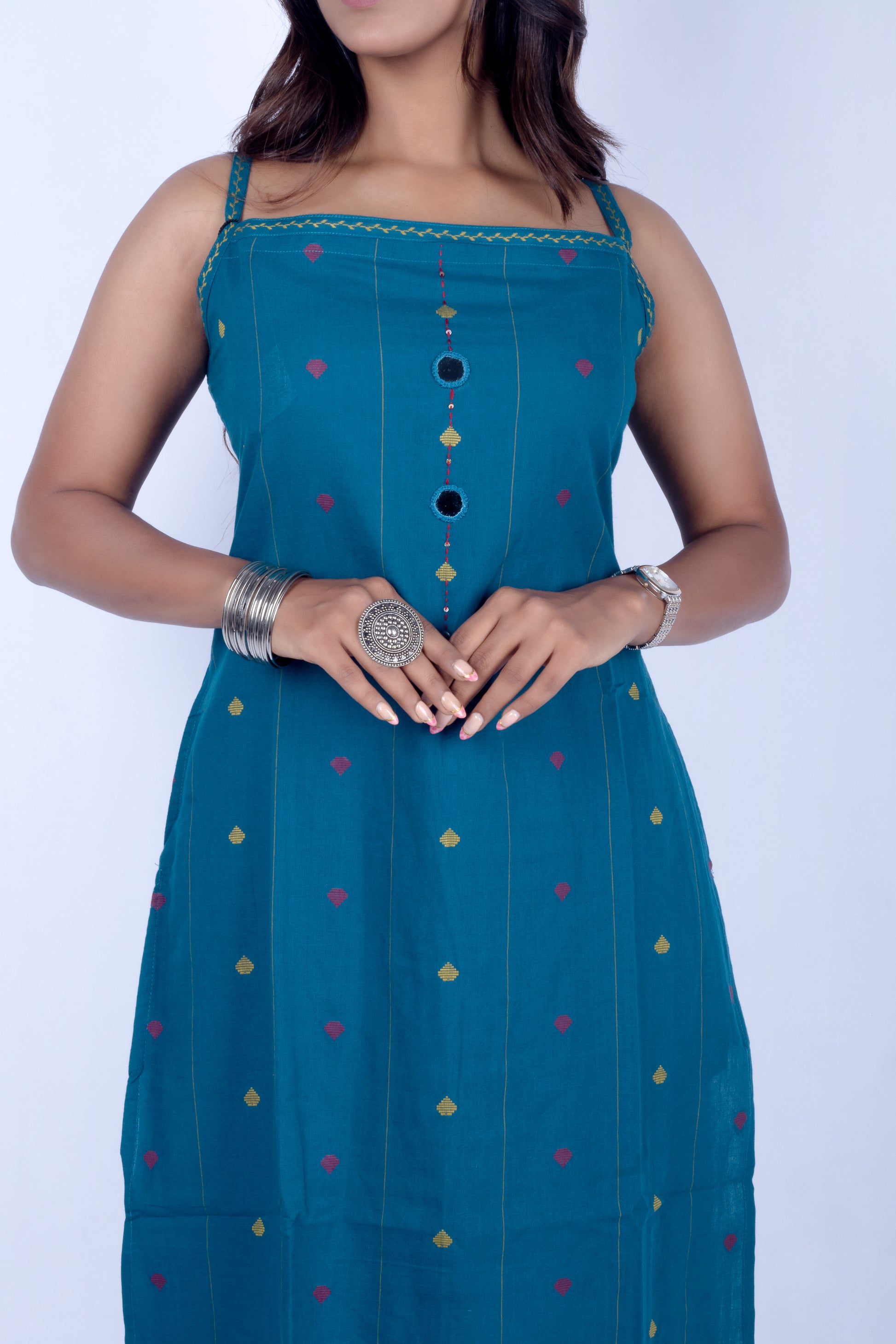 Turn heads with this elegant Dark Rama Kurti & Pant Set πΏπ«. Adorned with intricate embroidered buttas and delicate mirror accents, it brings just the right touch of festive sparkle. The sleeveless design keeps it chic and breezy, making it perfect for day functions, intimate celebrations, or stylish ethnic office wear πΈπ.