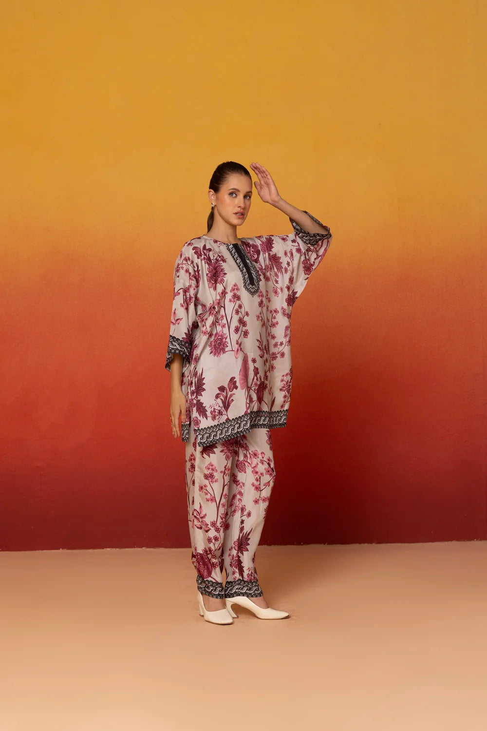 Imagine being wrapped in the quiet rhythm of a Kashmiri morning — that’s Sur. Crafted in delicate pink viscose muslin, this floral co-ord set blossoms with prints that echo the hidden treasures of a garden at dawn. Each motif drifts across the fabric like soft musical notes, weaving a symphony of grace and calm.